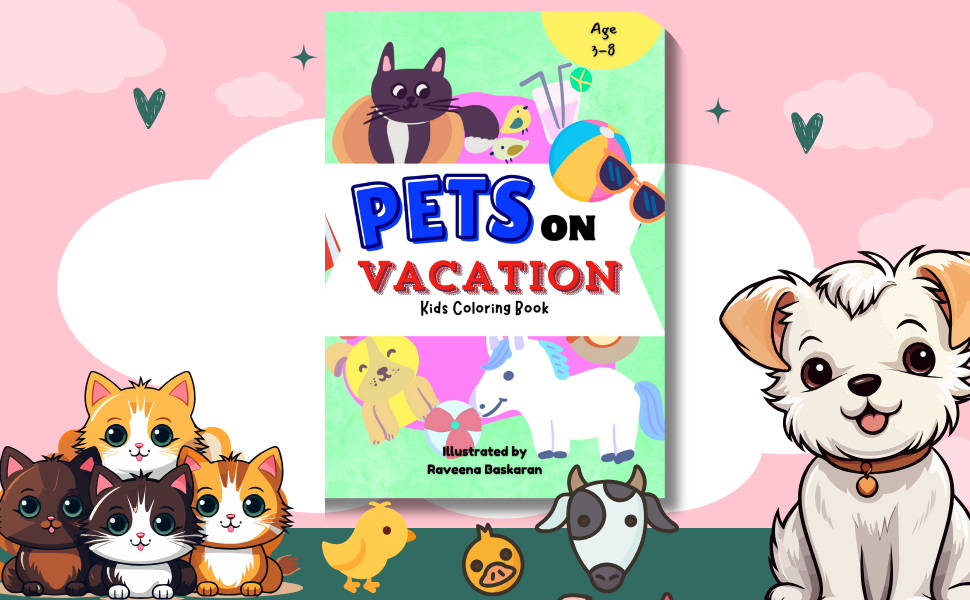 - 100 Unique Illustrations: Each page is filled with cute and charming pets on vacation, including dogs, cats, bunnies, farm animals and more.